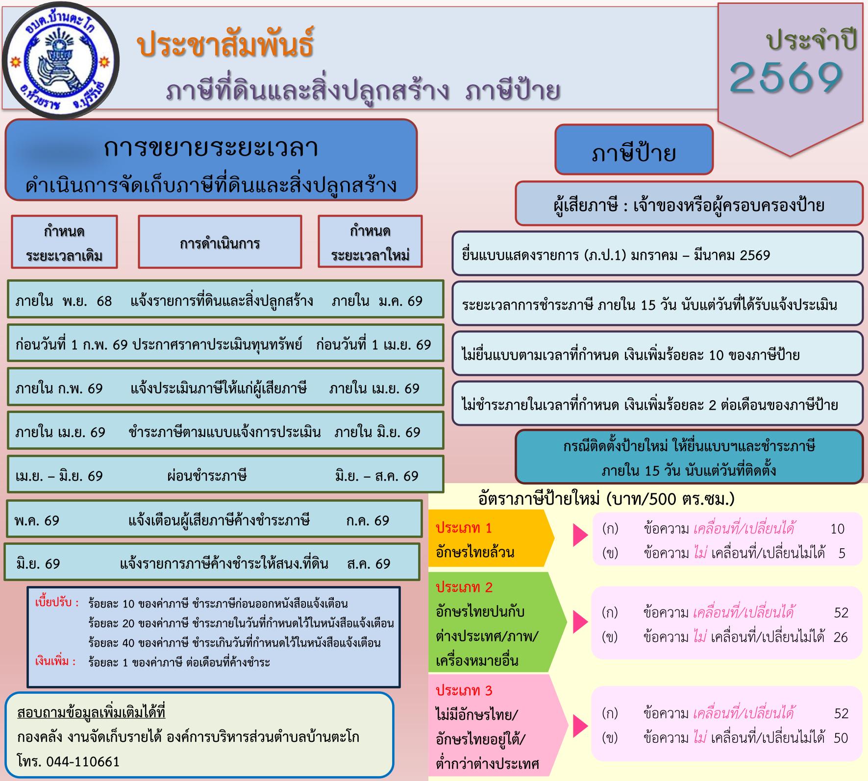 ประชาสัมพันธ์การเก็บภาษีทึ่ดินและสิ่งปลูกสร้าง ภาษีป้ายประจำปี 2568