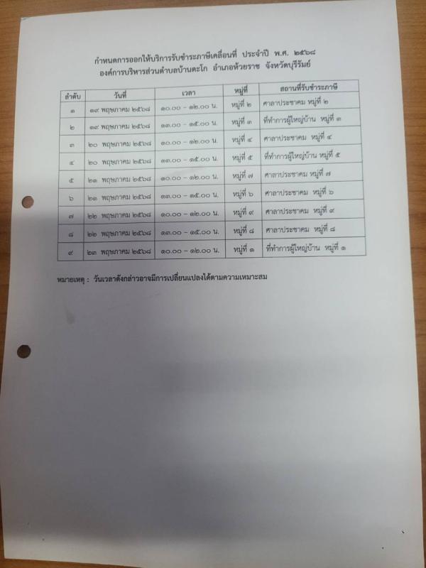 ประชาสัมพันธ์การออกบริการเก็บภาษีเคลื่อนที่ ประจำปี 2568